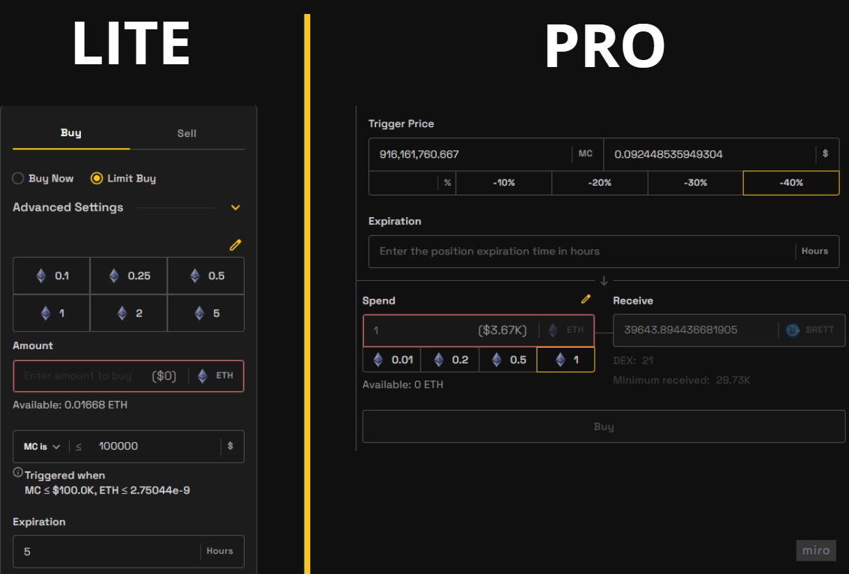 ⚡ Différences clés entre les ordres à cours limité Lite et Pro :