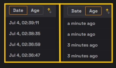 Utilisez le bouton Sort by type pour accéder aux premières transactions du token.