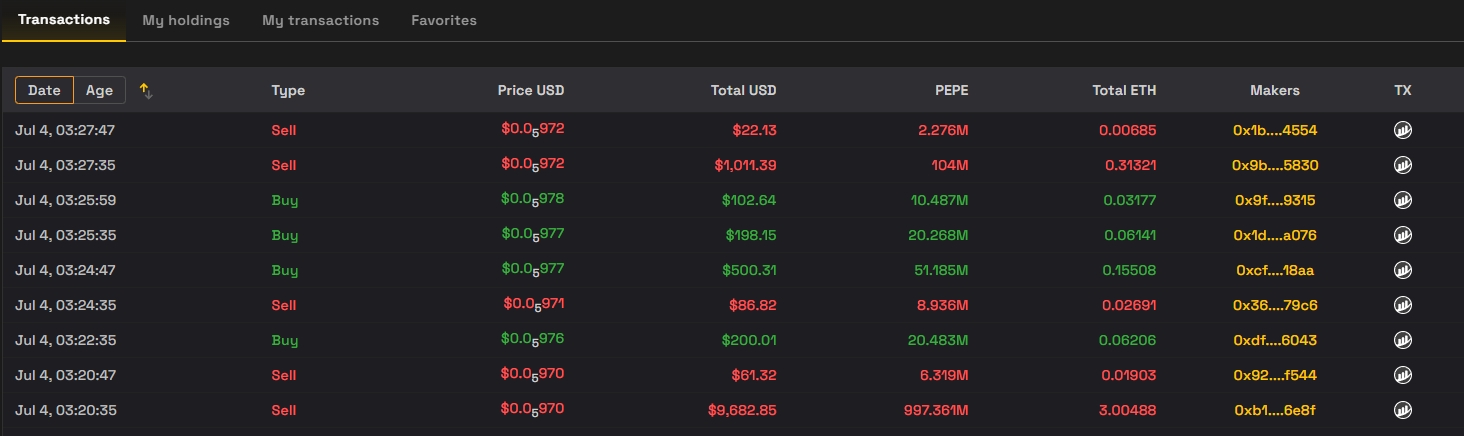 Makers: L'adresse du portefeuille ayant effectué la transaction.