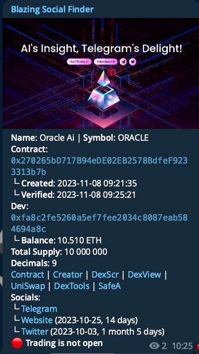 As we can see, Oracle Ai has issued 10 000 000 of ORACLE tokens.