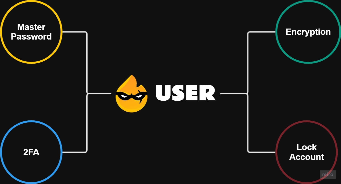 • Unique master password. Every user has their own master password, which isn’t stored in any database. Instead, we use a separate, secure mechanism.