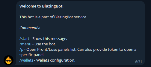 After you launched the Blazing App, use /menu commund to start using the bot.
