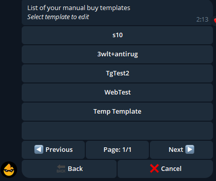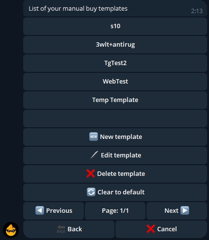 All created templates are synchronized between all versions of Blazing App. Once you create a template in the Blazing WebApp, it will be automatically displayed in the Telegram version of the bot.
