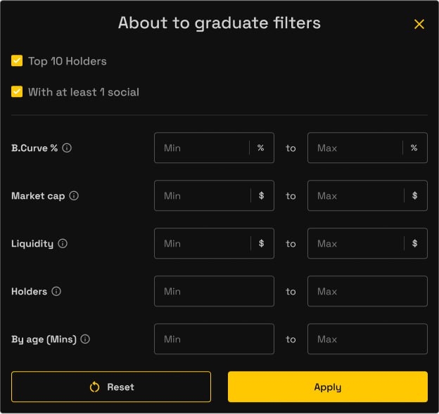 Bonding Curve Progress (%): Track how close a token is to reaching bonded status.