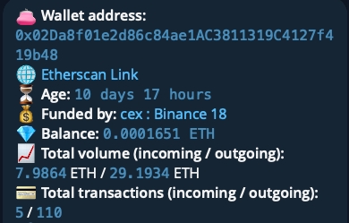 Hop 0 - основной кошелек: Это начальная точка анализа. Например, если адрес главного кошелька - 0x02Da8f01e2d86c84ae1AC3811319C4127f419b48, этот кошелек считается "Hop 0". Это центральный кошелек, чьи транзакции и взаимодействия изучаются.