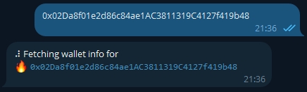 После того как вы отправите правильный адрес кошелька, бот начнет его сканировать.
