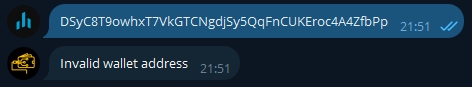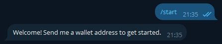 Запустив бота, вы можете сразу же приступить к сканированию кошельков. Для этого отправьте боту адрес кошелька, который вы хотите просканировать.