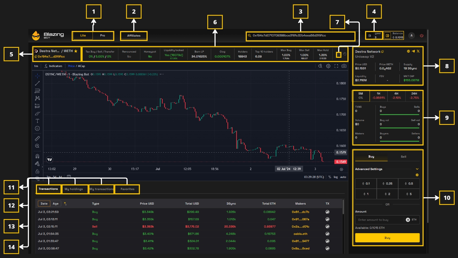Лайт-версия Blazing Bot идеально подходит для новичков, осваивающих торговые боты для DEX. Используя привычный интерфейс, характерный для всех известных криптобирж, мы создали Лайт-версию Blazing Bot, благодаря которой каждый пользователь сможет удобно и эффективно покупать монеты, доступные на DEX.