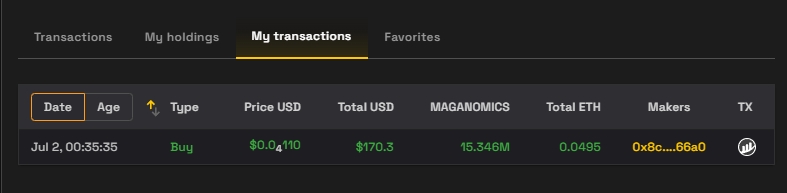 Makers: Адрес кошелька, совершившего транзакцию.