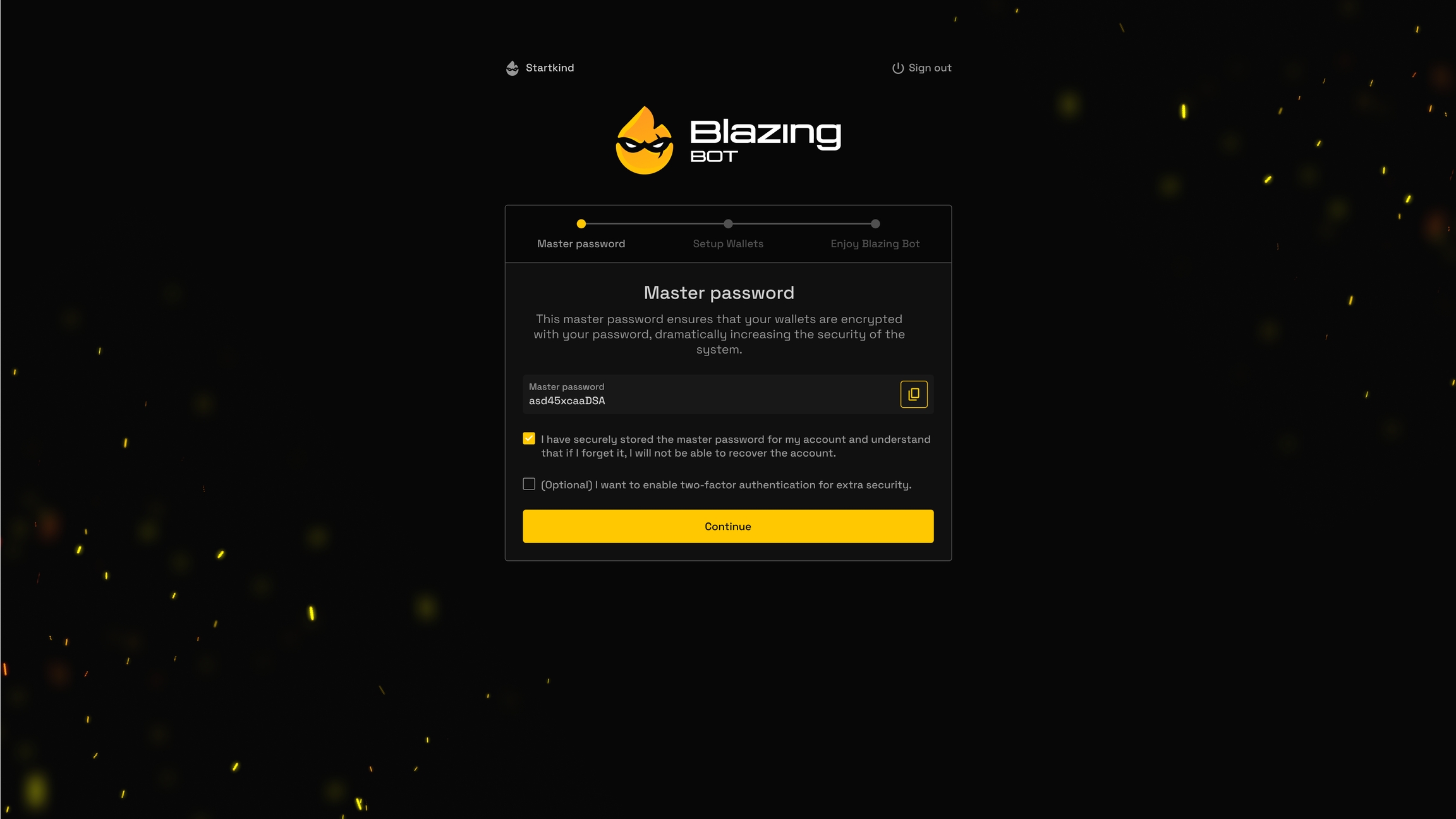После того как вы сохранили мастер-пароль, вы можете продолжить процесс создания аккаунта или настроить двухфакторную аутентификацию (2FA) для повышения безопасности.