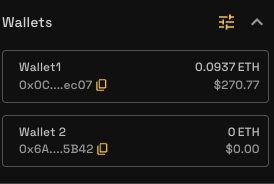 В этом меню вы также можете добавить больше кошельков в свой аккаунт, создав новые или импортировав существующие кошельки с помощью приватного ключа. Подробнее см. на странице «Установка кошельков».