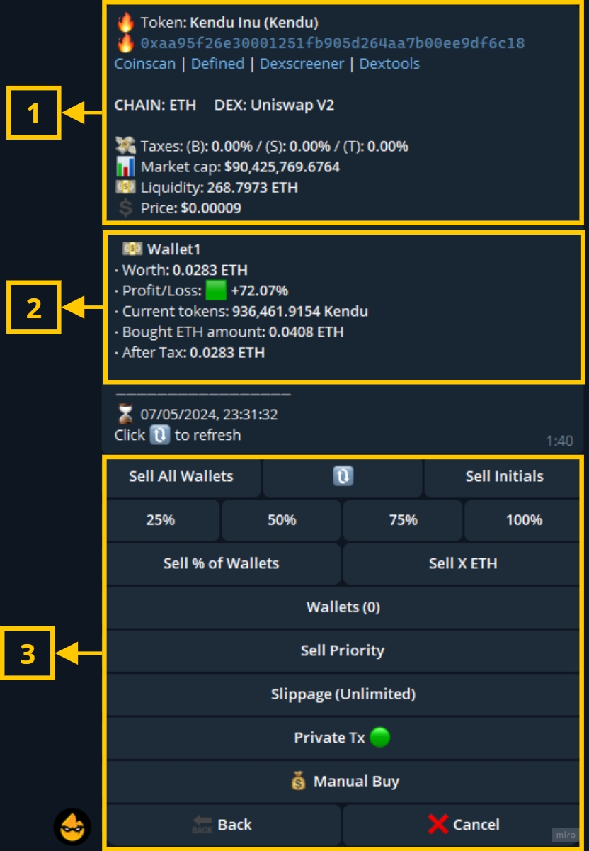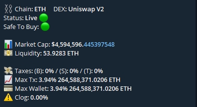 Информация о токене: Отображает основную информацию о токене и текущие параметры покупки.
